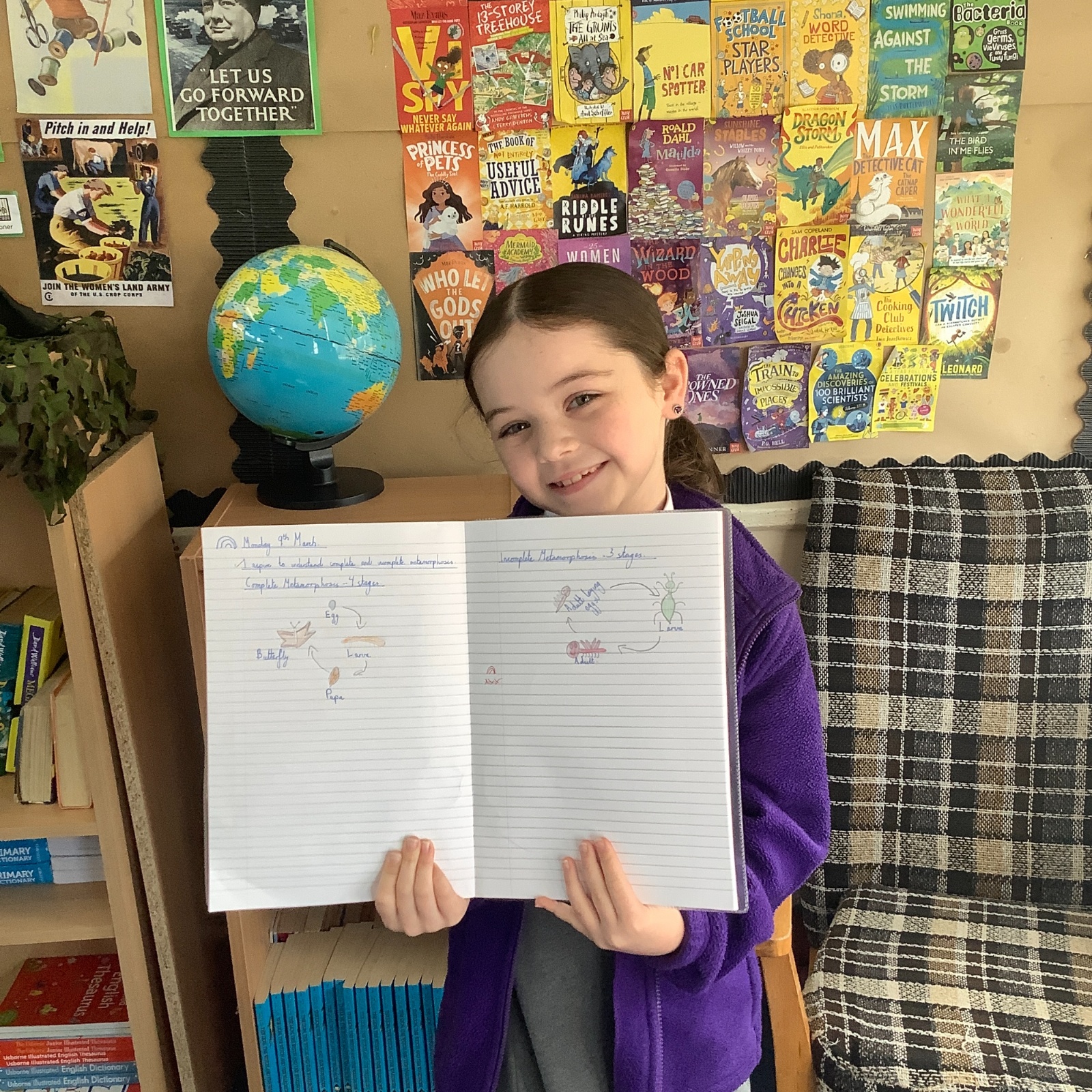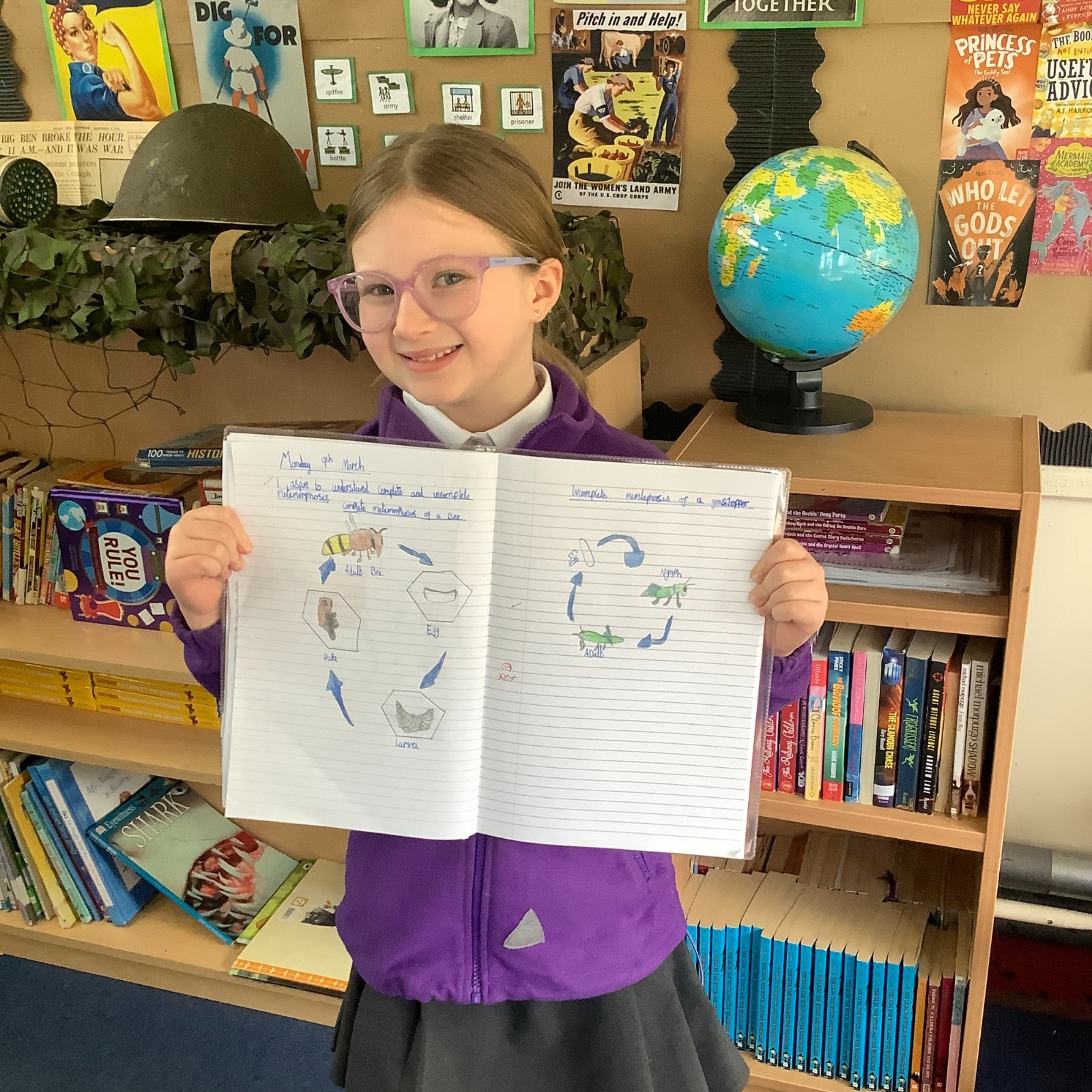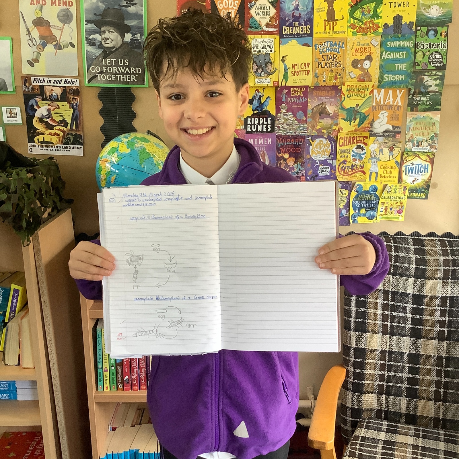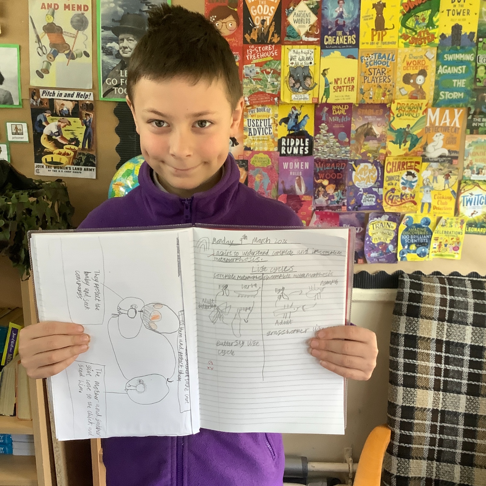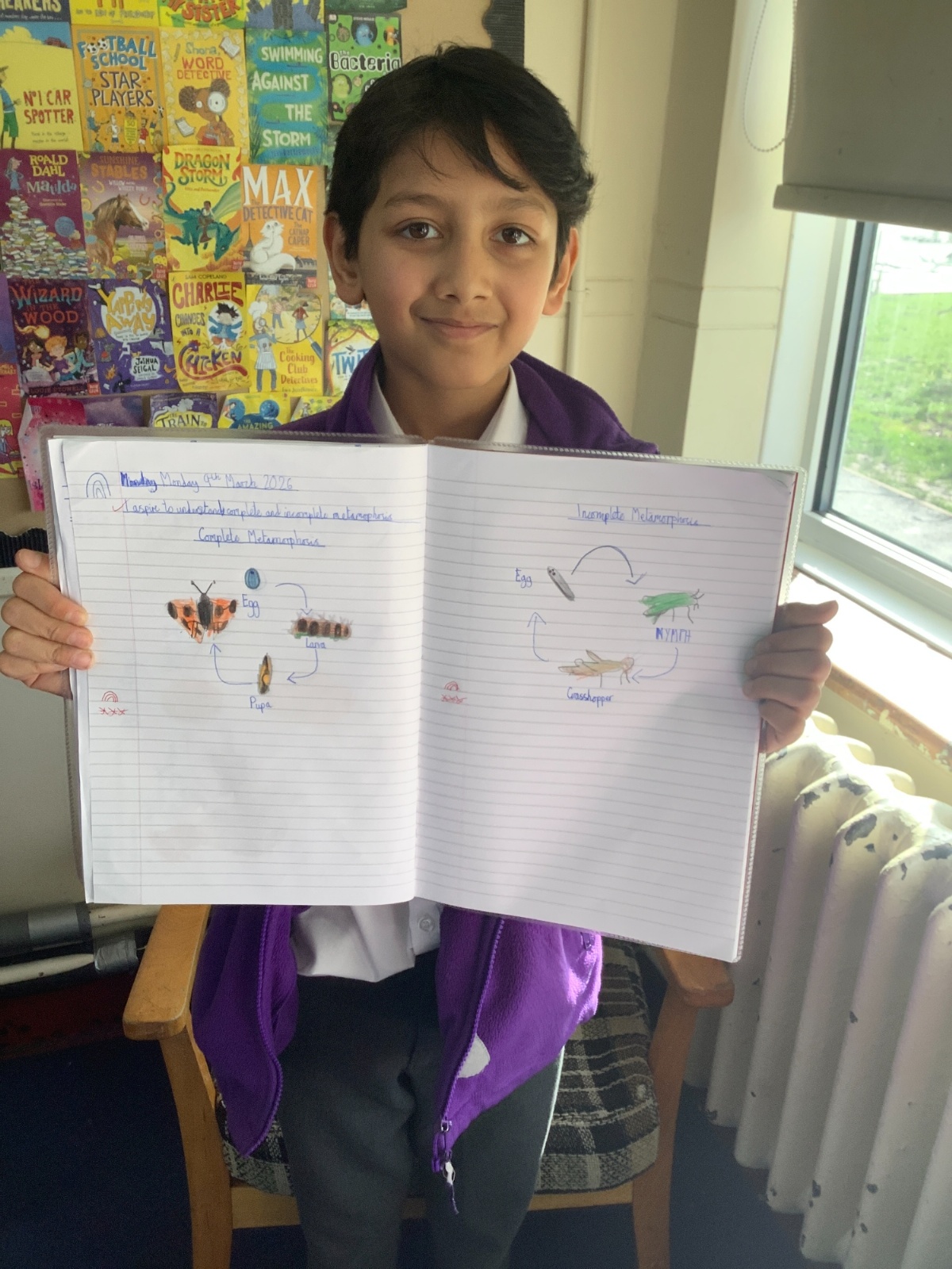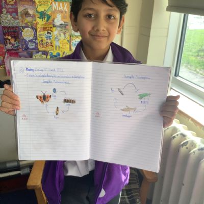 In Year 5 Science, pupils have been learning about complete and incomplete metamorphosis as part of their work on animal life cycles. They explored how some insects develop through different stages and compared these processes. The class had great fun learning about these changes and drawing their own detailed diagrams to show the life cycles.