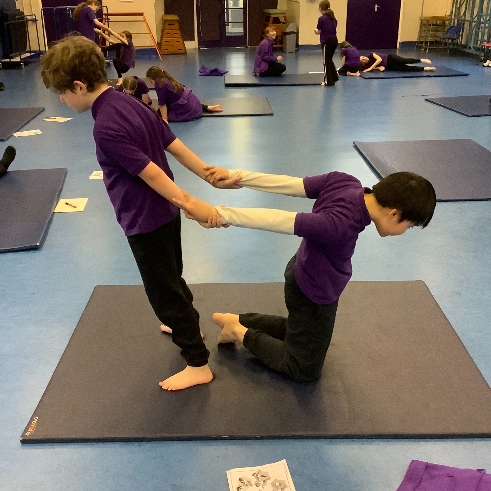 This term in indoor PE, Year 6 are focussing on using compositional principles to develop sequences. In this lesson, we worked collaboratively to sequence counter tension and balances; this meant we had to use body tension to create clear shapes and stable balances. We all worked sensibly and safely together and some pairs even created our own shapes!