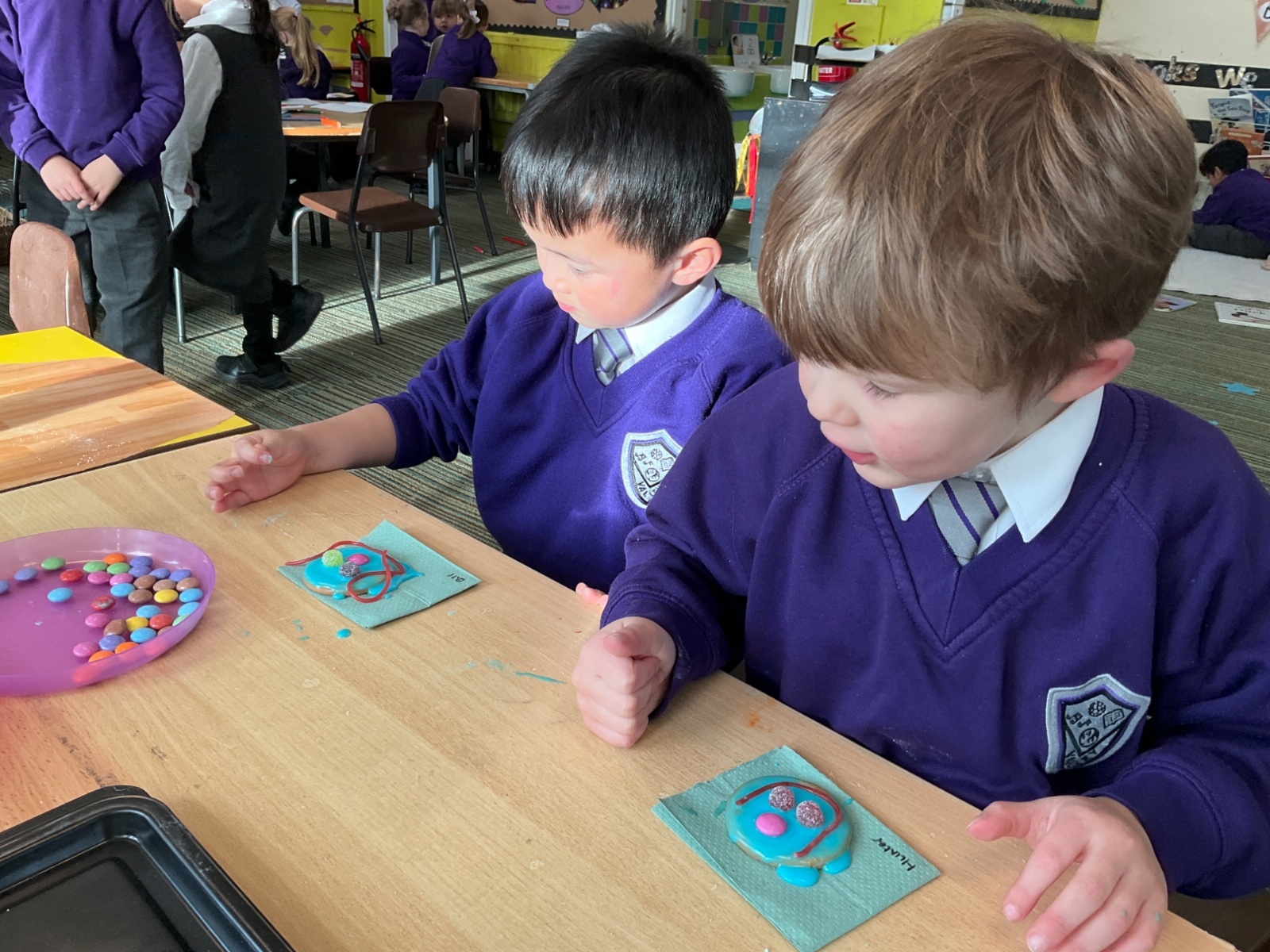 This week we launched our new topic in Reception - Monsters! We enjoyed decorating monster biscuits by spreading the icing sugar and then decorating with a range of different sweets. Whilst doing this,we were also practicing our language skills by using present and future tenses to explain what we were planning to add to our monster biscuit.