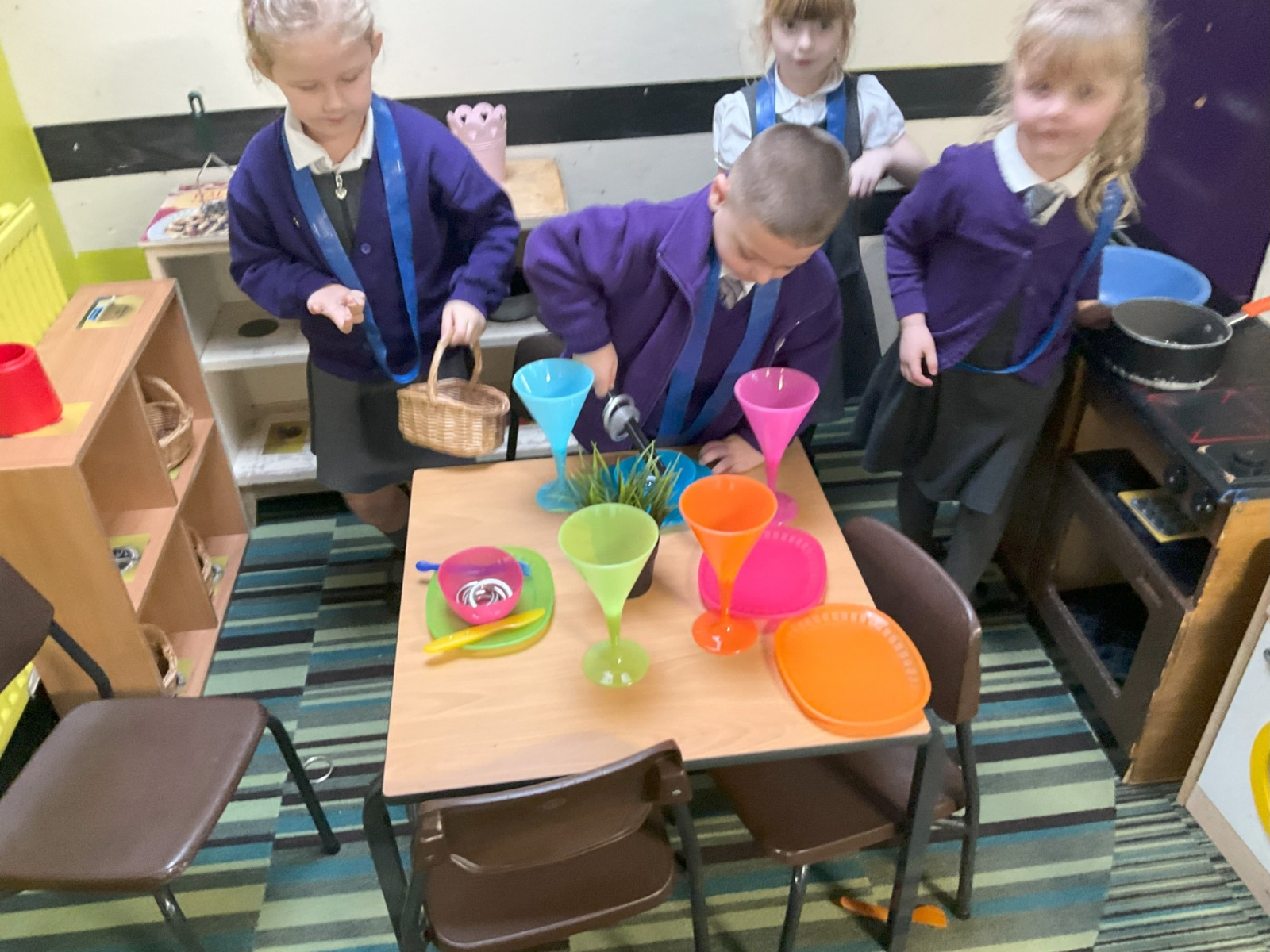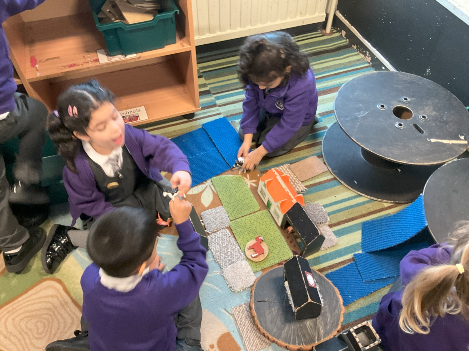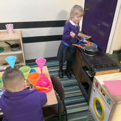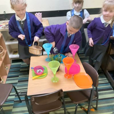 This week, we have been developing our own narratives in the imagining room. In the small world, we have been creating our own stories using the animals and building props as well as practising amber and red lock down with the farm animals! In the role play we have continued to recreate roles in the home.